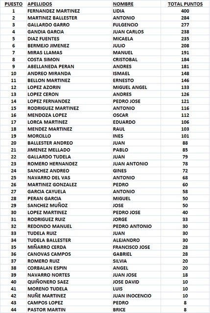 En cuanto a los resultados de la Asociación no pudieron ser mejores, Lidia Fernández una vez más estuvo luchando por la segunda plaza hasta los metros finales de la prueba, llevandosela finalmente al sprint en la misma linea de meta, Antonio Martínez también realizaría una estupenda carrera logrando el puesto 13 M30 y Manuel Miras también lograría entrar en el puesto 51 de su categoría.