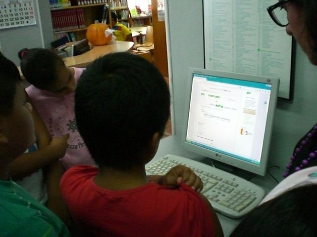 La actividad se inicia con una explicación de como están clasificados y ordenados los libros, y lo que significan los tejuelos de colores, a continuación se les enseña a usar el OPAC para encontrar un libro.