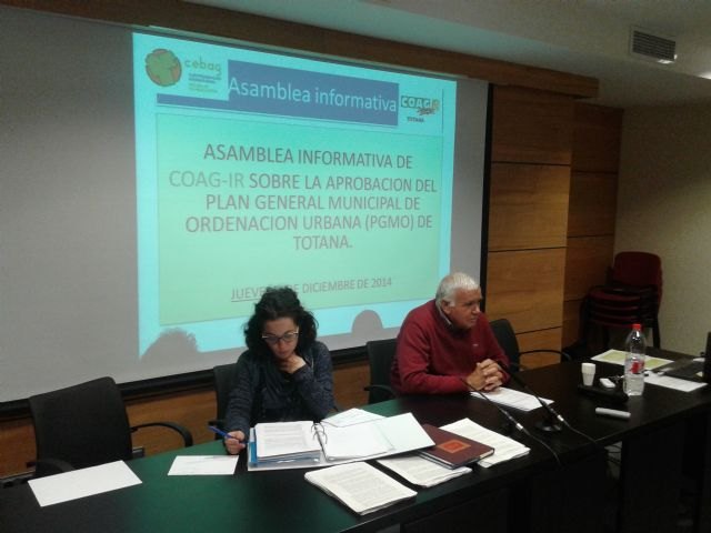 El Presidente de COAG del Bajo Guadalentín, Isidoro Cayuela, informó a la asamblea de que la Alcaldesa y el Equipo de Gobierno del PP habían incumplido su acuerdo y compromiso unánime con PSOE e IU, del Pleno de la Corporación del 29 de diciembre de 2011, de clasificar como urbanizable –a los solos efectos de edificación de una construcción agrícola o una vivienda unifamiliar en una finca de más de 5.000 m.–, en hasta 19 parajes del municipio, con unas 10.000 Has., propiedad de 4-5.000 agricultores; que ahora pretendían declarar como terreno protegido y no urbanizable, con el solo supuesto objeto de que le autorizasen en Murcia, edificar las más de 20.000 viviendas previstas en los convenios y urbanizaciones programadas y negociadas por el exalcalde Juan Morales en 2005.