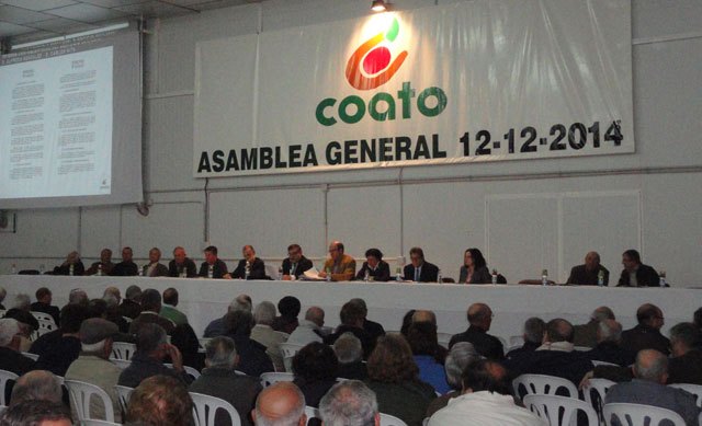 Más de mil socios de COATO participaron en la noche del pasado viernes 12 en la asamblea general ordinaria de la empresa cooperativa, que en sus 35 años de trayectoria se ha consolidado como la empresa agraria con más número de agricultores-socios y más superficie de cultivos agrícolas de la Región de Murcia, con más de 3.100 socios activos –en 40 de los 45 municipios de la Región y en otros 32 de Andalucía, Comunidad Valenciana y Castilla La Mancha– y más de 21.000 Has. de cultivos.