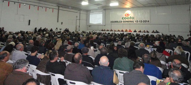 La asamblea abordó la aprobación de las cuentas del ejercicio 2013-2014, que ha supuesto un volumen global de negocio de COATO y las empresas cooperativas de su Grupo, de más de 48 millones de euros (8.000 millones de pts.). Asimismo la asamblea conoció, de boca de sus autores (ACR y PROMER) el informe de auditoría y el informe fiscal y contable referido a las cuentas del ejercicio, que acreditaba que los recursos propios (capital y reservas) de la empresa, triplicaban prácticamente el valor total de la inversión en inmovilizado neto de la Sociedad; lo que permite a la empresa cooperativa afrontar holgadamente, con recursos propios, las necesidades de inversión y de capital circulante, así como apoyar financieramente a sus socios, sin necesidad de recurrir a financiación ajena, situación que se prolonga en los últimos treinta años, cuando se celebra este año el 35 aniversario del inicio de su actividad.