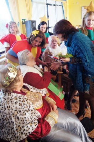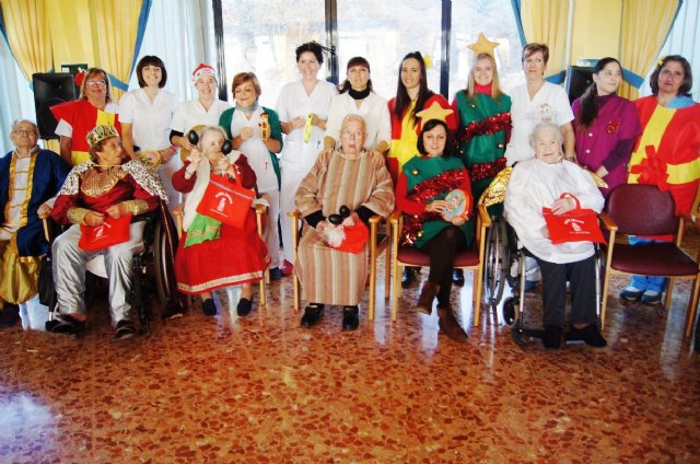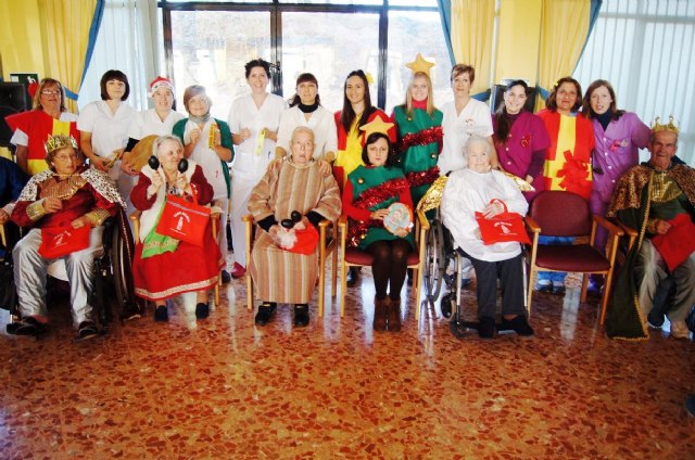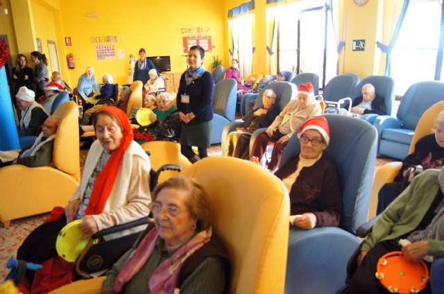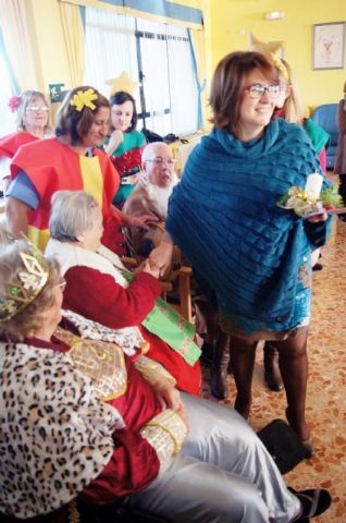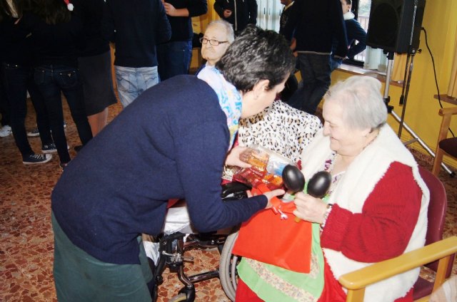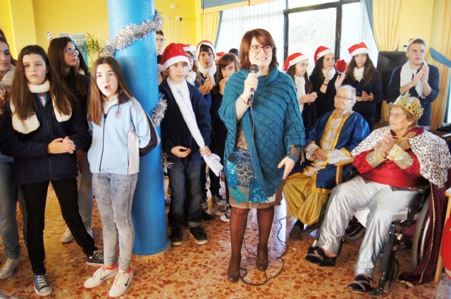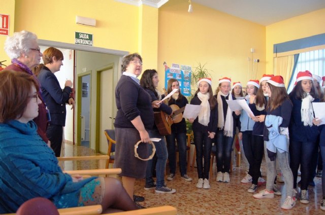 En el acto, alumnos del Colegio "La Milagrosa" de Totana han interpretado a los usuarios del centro tradicionales villancicos y han disfrutado del belén viviente que han preparado para la ocasión usuarios del centro.