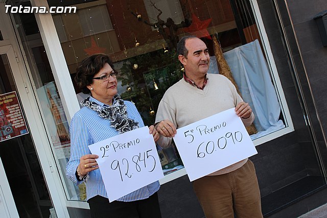 La librería "Atenas", de la calle Santomera 17 del barrio del Parral de Totana, ha repartido el número 92.845, el segundo premio del Sorteo Extraordinario de Lotería de Navidad, dotado con 1.250.000 euros a la serie, así como uno de los quintos premios, el 60.090, dotado con 60.000 euros a la serie.