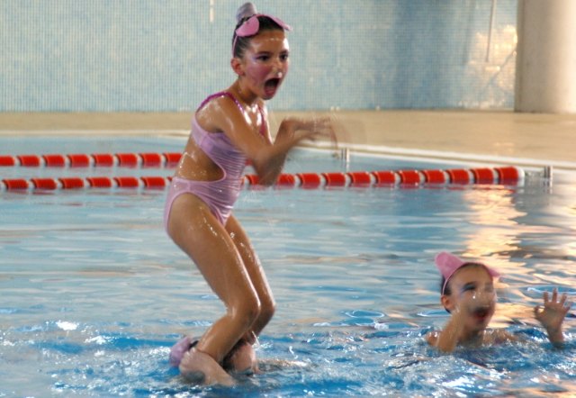 Las chicas de Natación Sincronizada de Move dirigidas por su entrenadora Sofía Costa pudieron mostrar sus progresos en este difícil deporte al numeroso público asistente.