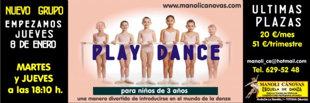 Para los más pequeños, el próximo jueves día 8 de enero arrancará el nuevo grupo de PLAY DANCE (para niños de 3 años). Una actividad sana y saludable que permite a los más pequeños mejorar su relación con el espacio y el conocimiento del propio cuerpo en un marco de absoluta diversión. Lo que consigue un desarrollo más rápido de sus habilidades físicas y motrices, facilitando así su posterior incorporación al PRE-BALLET.