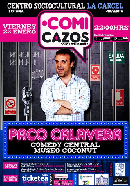 El programa ".ComiCazos" contempla una actuación cada mes en el Centro Sociocultural "La Cárcel" desde este mes de enero y hasta el próximo de abril; y comenzará este próximo viernes, 23 de enero (22:00 horas), con la interpretación del monologuista "Paco Calavera".