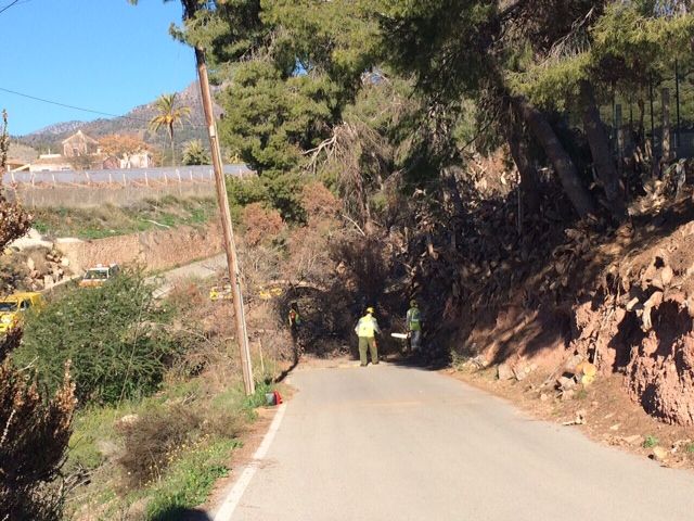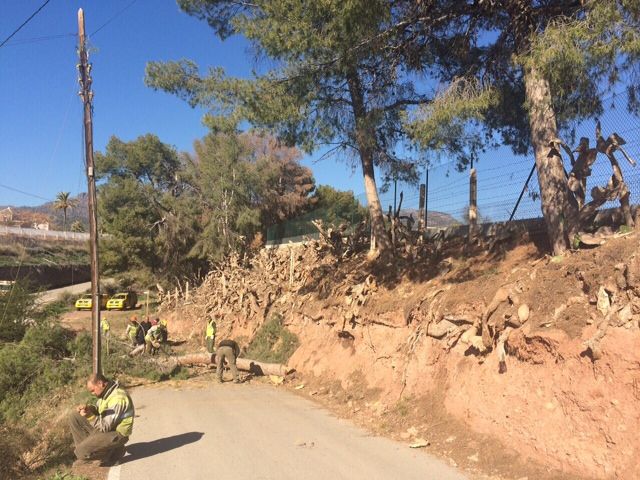 Protección Civil y la Brigada Forestal limpian el arbolado que ocupaba la vía en el Camino de los Mortolitos