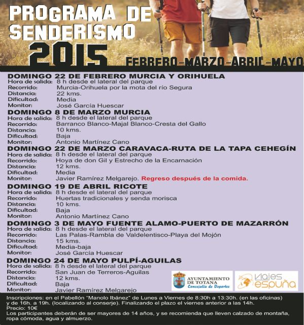 La Concejalía de Deportes ha presentado un nuevo programa de senderismo para los meses de febrero a mayo.