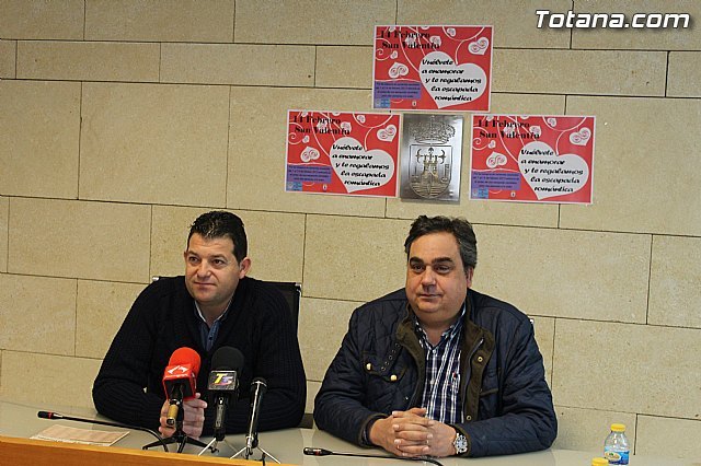 Un centenar de comercios de la Asociación de Comerciantes de Totana participa en la campaña de San Valentín a través de la cual los clientes podrán optar a una escapada de fin de semana romántica. Así lo han explicado el concejal de Comercio, Francisco Hernández, y el presidente de la Asociación de Comerciantes, Francisco Andreo, que han animado a los clientes participar en esta iniciativa.