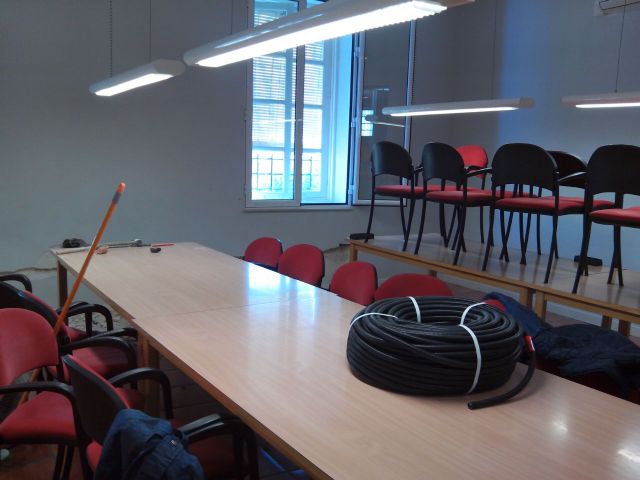 Esta semana se están realizando las obras en la sala de estudio, donde se están instalando nuevas conexiones eléctricas para conectar los dispositivos de estudio (ordenadores portátiles, tablets y móviles), así como acondicionamiento del hall de la planta superior, donde se proyectará una exposición permanente con la historia del edificio de la cárcel de Totana.