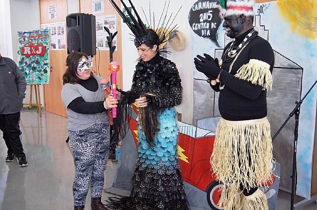 La Musa y Don Carnal del Carnaval´2015, representados por Yolanda García, de la “Peña Fantasía” y José María Martínez, de la “Peña Los Pinchos”, visitaron hoy el Centro de Día “Doña Letizia Ortiz” y el Centro Ocupacional “José Moyá Trilla” con el fin de acercar la fiesta del Carnaval a sus usuarios.