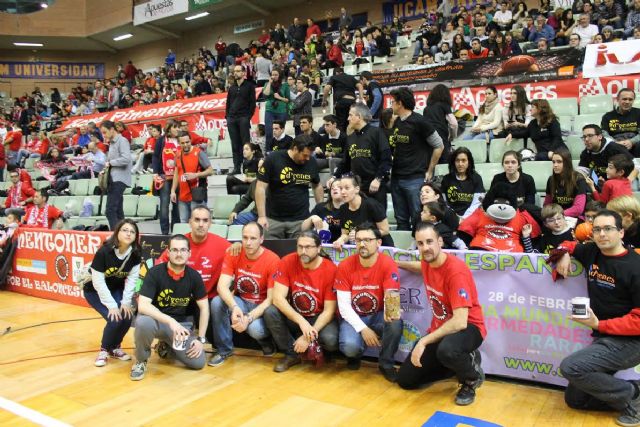 Las enfermedades raras tuvieron su protagonismo en el partido que enfrentó al UCAM Murcia CB contra el CAI Zaragoza en el Palacio de los Deportes de Murcia ayer domingo. La recaudación del encuentro de baloncesto se destinará a la Asociación de Enfermedades Raras D´Genes, para el mantenimiento del Centro Multidisciplinar "Celia Carrión Pérez de Tudela" ubicado en Totana gracias a la generosidad de la Universidad Católica San Antonio.
