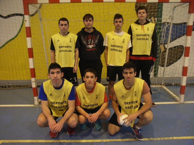 En la modalidad de Balonmano Juvenil Masculino, el IES Juan de la Cierva, pese a perder su encuentro frente al IES Domingo Valdivieso de Mazarrón en un encuentro celebrado en Totana el pasado miércoles 25 de febrero, ha logrado clasificarse para los Cuartos de Final, como segundo de grupo. Por otro lado, en las finales celebradas en Mazarrón de Fútbol Sala Cadete y Juvenil Masculino, el pasado viernes 27 de febrero, los equipos del Colegio La Milagrosa salieron derrotados, también frente al IES Domingo Valdivieso de Mazarrón.