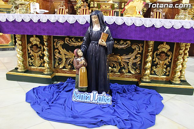 Luisa de Marillac (París, 12 de agosto de 1595 – París, 15 de marzo de 1660). El 29 de noviembre de 1633 funda con Vicente de Paúl la Compañía de las Hijas de la Caridad. Es beatificada el 9 de mayo de 1920 por el papa Benedicto XV y canonizada el 11 de marzo de 1934 por el papa Pío XI. En 1960 el papa Juan XXIII la proclama patrona de los asistentes sociales.