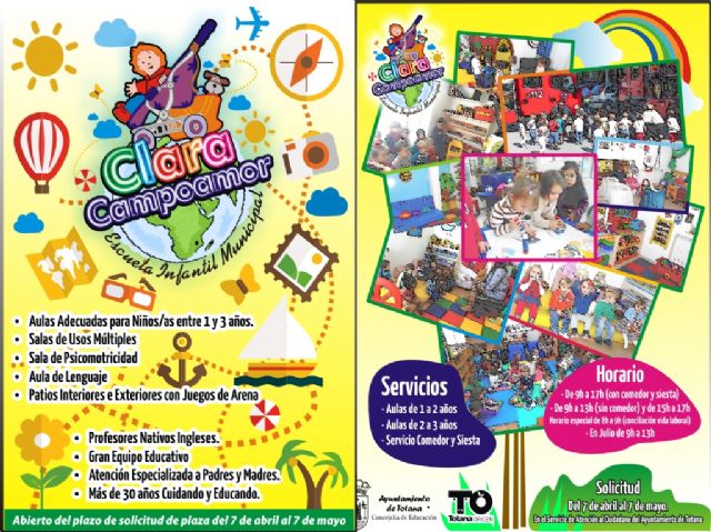 La Concejalía de Educación recuerda que continúa abierto, hasta el próximo 7 de mayo, el plazo de admisión para la Escuela Infantil Municipal "Clara Campoamor".