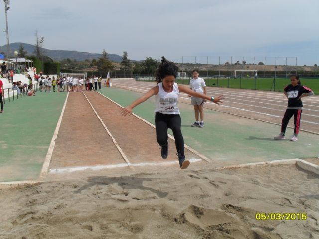 El pasado sábado 25 de abril tuvo lugar en el Polideportivo Municipal "6 de diciembre", la Fase Local de Atletismo de Deporte Escolar, organizada por la Concejalía de Deportes del Ayuntamiento de Totana, que contó con la participación de 110 escolares de los diferentes centros de enseñanza de la localidad, pertenecientes a las categorías alevín, infantil, cadete y juvenil, tanto en modalidad masculina como femenina, que tuvieron la oportunidad de competir en varias disciplinas deportivas como salto de altura, salto de longitud, lanzamiento de peso, velocidad y resistencia.