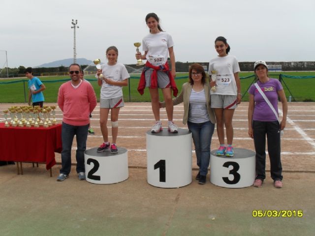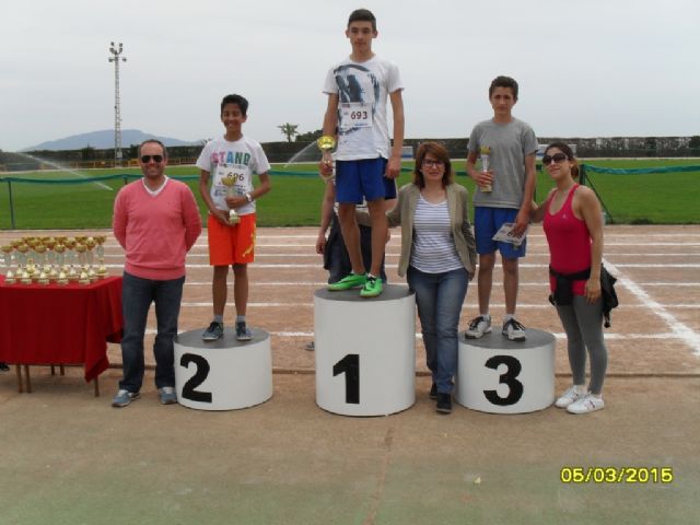 Por último, los centros de enseñanza mejor clasificados en esta Fase Local, tendrán la oportunidad de participar en la Final Regional de Atletismo de Deporte Escolar, que organiza la Dirección General de Juventud y Deportes de la Región de Murcia, los próximos días 22 y 23 de Mayo en Lorca.