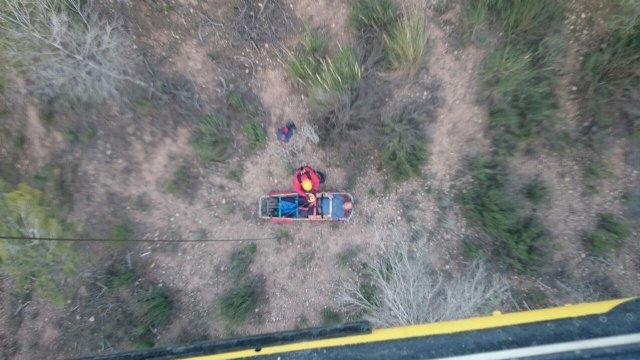 Rescatado el accidentado que presenta heridas leves. El helicóptero los llevará hasta las instalaciones de la Base Aérea de Alcantarilla, donde una ambulancia del 061 lo recogerá y trasladara al Hospital Universitario Virgen de la Arrixaca para realizar una exploración más exhaustiva, que permita descartar cualquier otra lesión.
