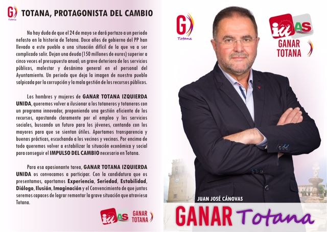El acto de presentación de la Candidatura GANAR TOTANA, IZQUIERDA UNIDA tendrá lugar el próximo Jueves 7 de mayo