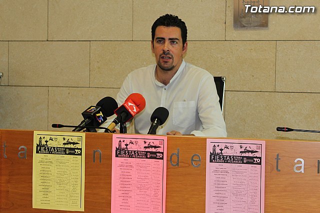 El concejal de Festejos y Cultura Popular, Alfonso Cayuela, ha informado del calendario que se ha planificado junto con asociaciones de vecinos y colectivos para la programación de las fiestas en barrios y pedanías para este año 2015. Concretamente, hay un total de 16 fesjetos que arrancan el fin de semana del 5, 6 y 7 de junio en el barrio del Tirol Camilleri.
