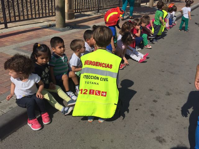 Efectivos de los Cuerpos y Fuerzas de Seguridad y Emergencias de Totana, con sus correspondientes vehículos, se acercaron hoy a la Escuela Infantil Municipal "Clara Campoamor" con el fin de hacer partícipes a los alumnos de este centro en una jornada de acercamiento y conocimiento de la labor que realizan estos profesionales.