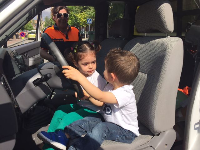 Los escolares, que han sido acompañados por la alcaldesa de Totana, Isabel María Sánchez, y la concejal de Educación, Josefa María Sánchez, han subido a los vehículos de los diferentes Cuerpos y han disfrutado de una jornada diferente fuera del aula.
