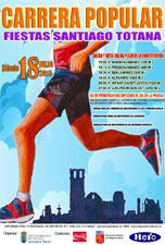 La Carrera Popular "Fiestas de Santiago" organizada por la Concejalía de Deportes de Totana se celebrará el sábado día 18 de julio dentro del programa de los festejos patronales, e incluye un total de seis carreras y once categorías, con salida y meta en la plaza de la Constitución.