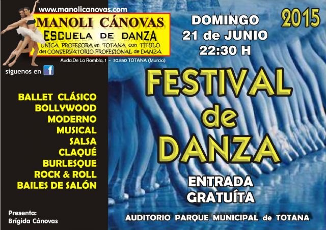 El próximo domingo 21 de Junio a las 22:30 h la Escuela de Danza Manoli Cánovas celebrará su Festival de Danza.