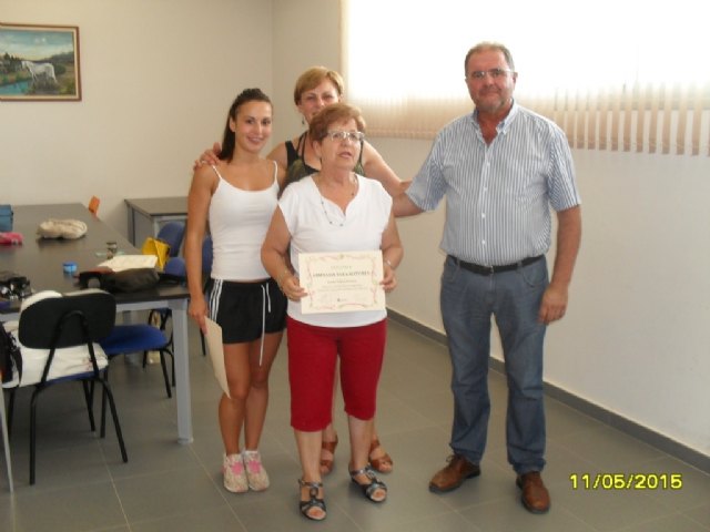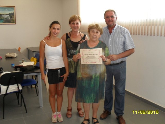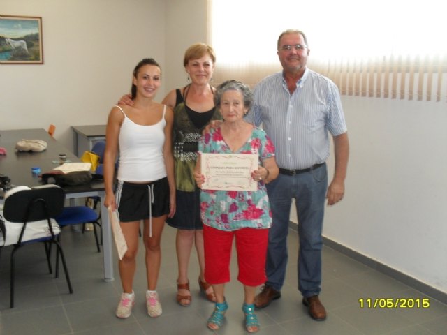 En el acto de clausura estuvieron presentes el alcalde de Totana, Juan José Cánovas, y la concejal de Mayores y Tercera Edad, Antonia Camacho Crespo, respectivamente.