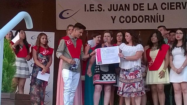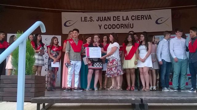 Los alumnos de 4° de la ESO del Instituto "Juan de la Cierva y Codorníu" de Totana han querido hacer de su graduación, celebrada recientemente, un espacio de sensibilización hacia las enfermedades raras. Por ello, estos alumnos, junto con su profesora de Economía, María José Jímenez Sánchez, han querido realizar un regalo a la Asociación de Enfermedades Raras D´Genes, consistente en la donación de 170 euros.