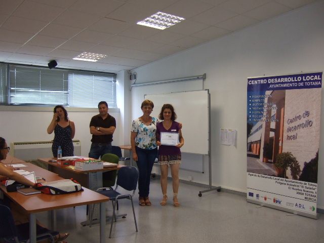 La concejal de Desarrollo Económico, Fomento y Empleo, Antonia Camacho, ha entregado los diplomas a los alumnos participantes en los cursos de Prevención de Riesgos Laborales y Manipulador de Alimentos que se han celebrado recientemente en el Centro de Desarrollo Local.