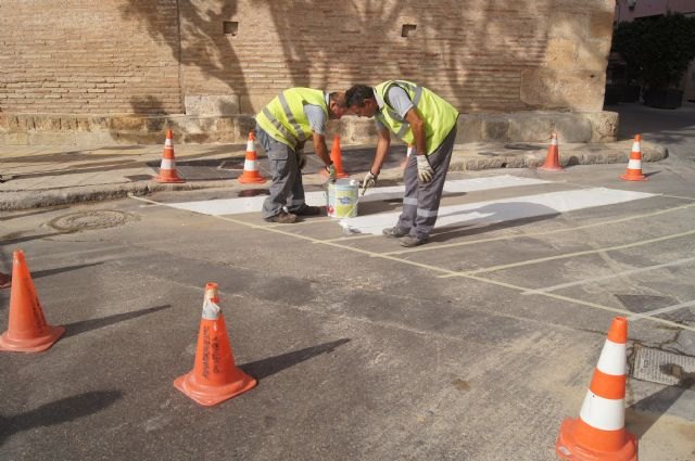 Según informan fuentes de este departamento, durante estos días se han acometido trabajos de repintado en blanco de los pasos de peatones, señales de división de la vía pública y espacios destinados al aparcamiento.