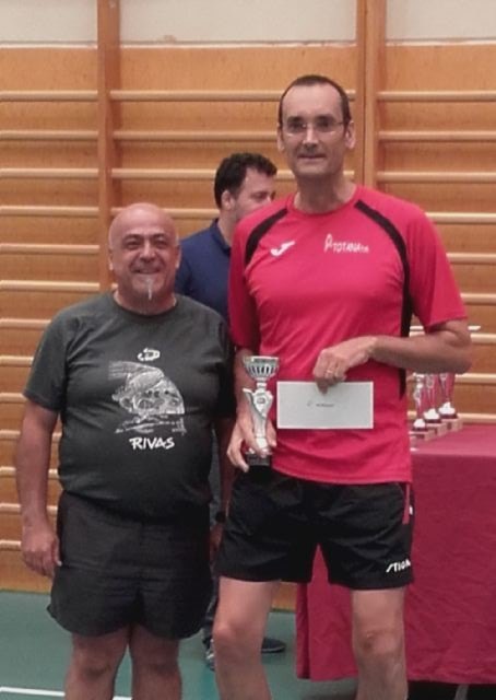 En categoría Veteranos participaron otros dos totaneros. Pedro José Sánchez se quedó también a las puertas de la clasificación, con 3 victorias y 4 derrotas, y Domingo Méndez consiguió hacerlo desde el puesto n°3, con 5 victorias y 2 derrotas. Superó eliminatorias hasta plantarse en la semifinal donde cedió con el jugador de Coslada Ángel Díaz en un partido muy igualado.