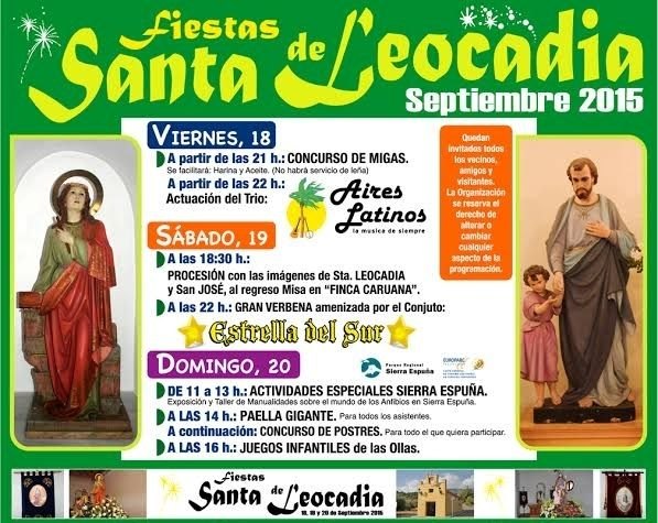Las fiestas de Santa Leocadia, en la diputación de La Sierra, se celebrarán del 18 al 20 de septiembre con un variado programa de actividades que se desarrollarán durante todo el fin de semana, según informan fuentes de la Concejalía de Festejos.