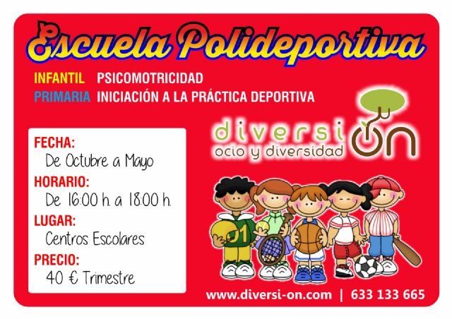 La Concejalía de Deportes, a través de la Asociación "Diversión. Ocio y Diversidad", va a poner en marcha un curso escolar más el programa "Escuela Polideportiva", un proyecto que se oferta a los centros de Educación Infantil y Primaria de Totana mediante la oferta de actividades extraescolares deportivas en las instalaciones de cada uno de los colegios.