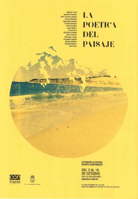 La Asociación Cultural de Pintores "Con-Traste" de Totana organiza la muestra "La poética del paisaje" en la Sala de Exposiciones "Gregorio Cebrián", del 2 al 18 de octubre, la cual será inaugurada este viernes, a partir de las 20:00 horas, según informan fuentes de la Concejalía de Cultura.