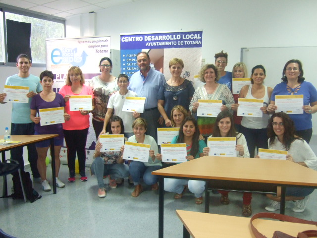 El alcalde, Juan José Cánovas, y la concejal de Desarrollo Económico, Fomento y Empleo, Antonia Camacho, han entregado recientemente los diplomas correspondientes al curso de "Técnico en animación de personas mayores y discapacitados" que se ha impartido en el Centro de Desarrollo Local de Totana.