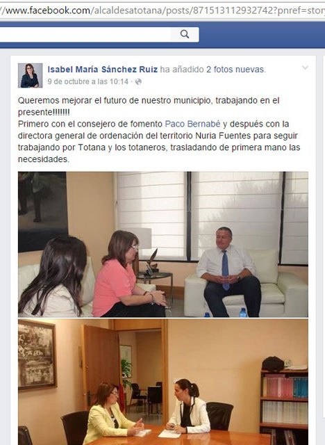 "Claro que esta confusión, puede ser debida, a que la propia Isabel María Sánchez Ruiz, todavía a día de hoy, se autodefine en su perfil de redes sociales como Alcaldesa de Totana".
