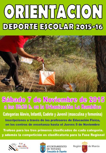 La Concejalía de Deportes y el Club de Orientación de Totana organizarán el próximo sábado 7 de noviembre la Fase Local de Orientación de Deporte Escolar, en la urbanización "La Ramblica", a partir de las 09.30 horas de la mañana.