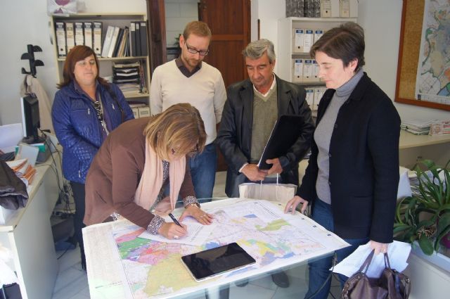 La firma se realizó en las dependencias de la Concejalía de Urbanismo y estuvo acompañada por el titular de esta área, Carlos Enrique Ballester, y miembros de la candidatura de empleados públicos de la UGT en el Ayuntamiento de Totana.