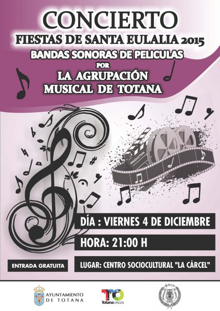 El concierto "Fiestas de Santa Eulalia" que protagonizará la Agrupación Musical de Totana se aplaza este viernes, día 4 de diciembre, una hora; de forma que se celebrará finalmente a las 21:00 horas y no a las 20:00 horas como inicialmente recoge el programa de fiestas.