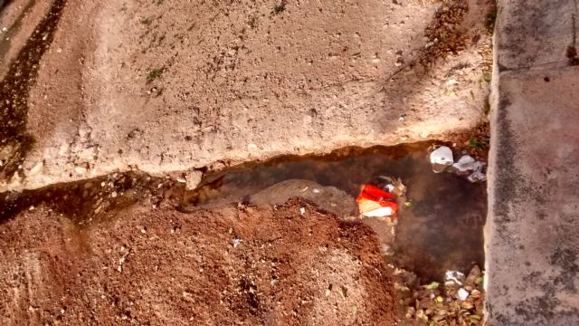"Las filtraciones se producen desde uno de los muros laterales de la rambla hacia su cauce como consecuencia de un posible atranque en el saneamiento de la zona, que se ha producido por la falta de actuación", según informa el PP de Totana en un comunicado.