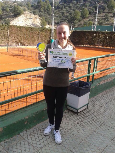 La jugadora de la Escuela de Tenis del C.T.Totana Ana Heredia ha conseguido la victoria en el último torneo del año en la Región de Murcia, el Torneo Promesas MS Deportes, disputado en el Club de tenis Algezares de Murcia. Esta victoria supone un gran éxito para la jugadora totanera ya que supone el primer título de su vida en este tipo de torneos lo que refleja la gran progresión que está teniendo en su juego y el buen trabajo que está realizando.