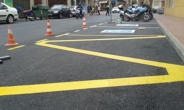 Según informan fuentes de este departamento, durante estos días se están acometido trabajos de repintado en blanco de los pasos de peatones, señales de división de la vía pública y espacios destinados al aparcamiento.