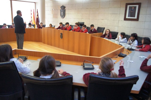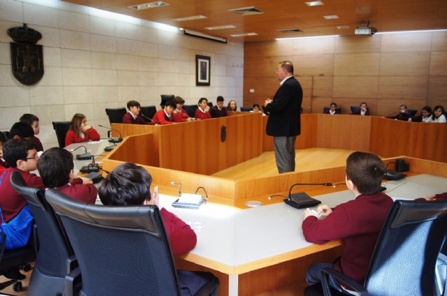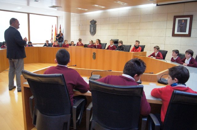Alumnos de Educación Primaria del colegio "Reina Sofía" de Totana han abierto el programa "Conoce tu ayuntamiento", una iniciativa con la que se pretende ofrecer a los centros de enseñanza de Totana, dentro de su calendario de actividades extraescolares, la posibilidad de que los alumnos de Educación Primaria puedan visitar el principal edificio consistorial.