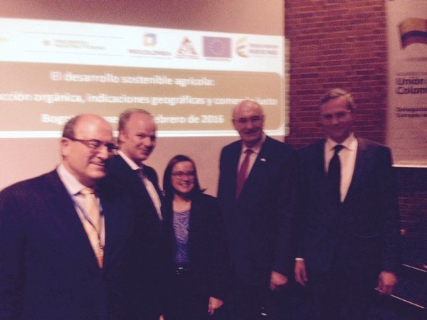 Tres empresas europeas de referencia en la producción, transformación y comercialización de productos ecológicos, entre las que se encuentra COATO, han sido seleccionadas por la Unión Europea para participar en una Jornada Internacional sobre: Desarrollo Sostenible Agrícola, producción ecológica, denominaciones de origen y comercio justo, que se celebró en la capital de Colombia el pasado lunes, bajo el patrocinio de la Unión Europea y con la presidencia e intervención tanto del Comisario de Agricultura Europeo Phil Hogan como de los Ministros de Agricultura y de Comercio de Colombia.