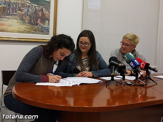 La concejal de Juventud, Inmaculada Blázquez, y la de Educación, Eulalia Moreno, presentaron a los jóvenes universitarios, quienes suscribieron su compromiso de colaboración con el Ayuntamiento de Totana, en coordinación con el Servicio de Atención a la Diversidad y Voluntariado de la UMU.