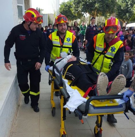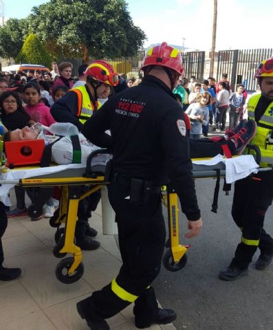 Alumnos del CEIP "Luis Pérez Rueda" de Totana participaron la semana pasada en un simulacro de evacuación del edificio en caso de terremoto, en cuya actividad conocieron de primera mano cómo actuar en caso de una emergencia.