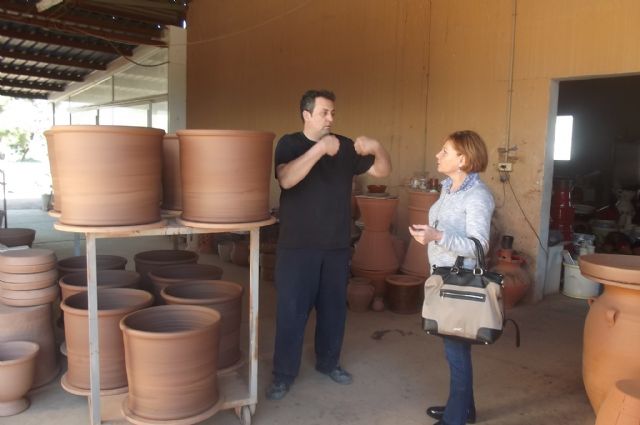 La directora general de Comercio y Protección del Consumidor, Francisca Cabrera, continuando con la ronda de visitas a talleres artesanos de la Región de Murcia, conoció hoy el trabajo que se realiza en el taller de la empresa Alfartudela, del artesano Francisco Javier Tudela Cayuela, que fue Premio Nacional de Artesanía concedido por la Asociación Española de Ciudades de la Cerámica en 2014.