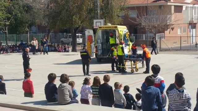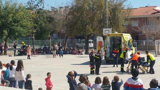 Alumnos del CEIP "Tierno Galván" de Totana participaron la semana pasada en un simulacro de evacuación del edificio en caso de incendio, en cuya actividad conocieron de primera mano cómo actuar en caso de una emergencia.